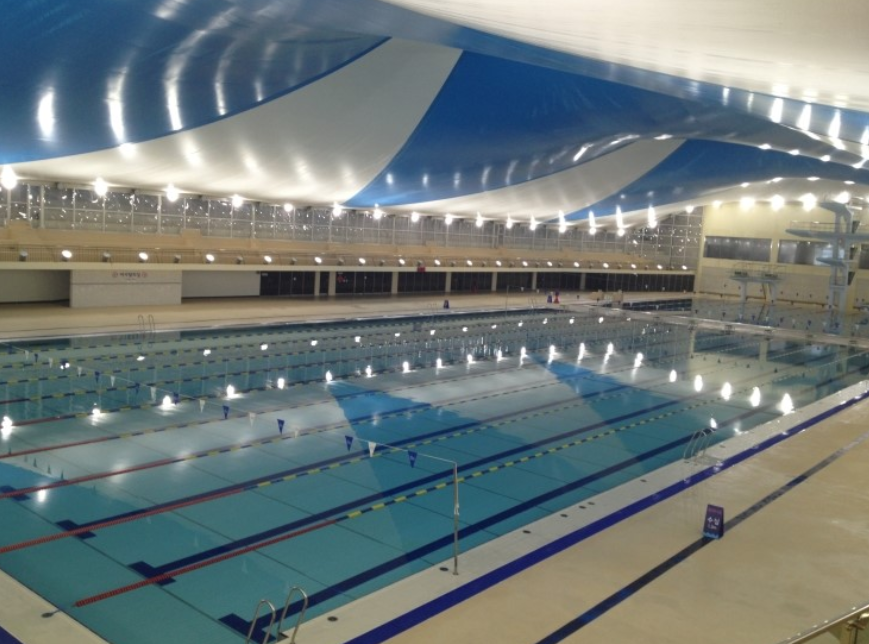 - 시설: 50m 레인 10개, 수심 1.25m로 안전성을 고려한 설계.