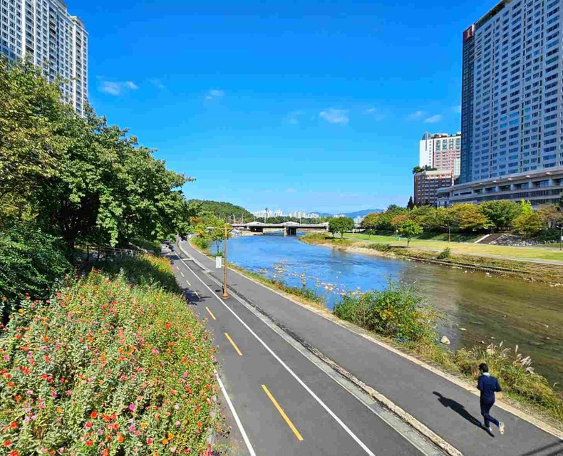 올림픽공원이 사계절 다채로운 조경을 자랑한다면, 탄천은 **'생명력 넘치는 자연의 흐름'**을 통해 계절마다 새로운 모습을 선사합니다.