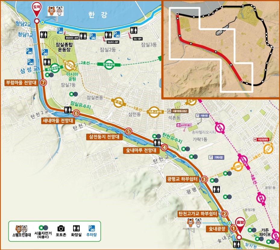 롯데월드가 짜릿한 모험을, 석촌호수가 잔잔한 낭만을, 방이동 먹자골목이 미식의 즐거움을, 그리고 올림픽공원이 역사와 문화의 깊이를 선사한다면, 탄천은 이 모든 것과 더불어 **'살아있는 생태계의 활력'과 '끝없이 이어지는 자연 속 여유', 그리고 '진정한 건강과 휴식'**을 동시에 제공하는 독보적인 공간입니다.
